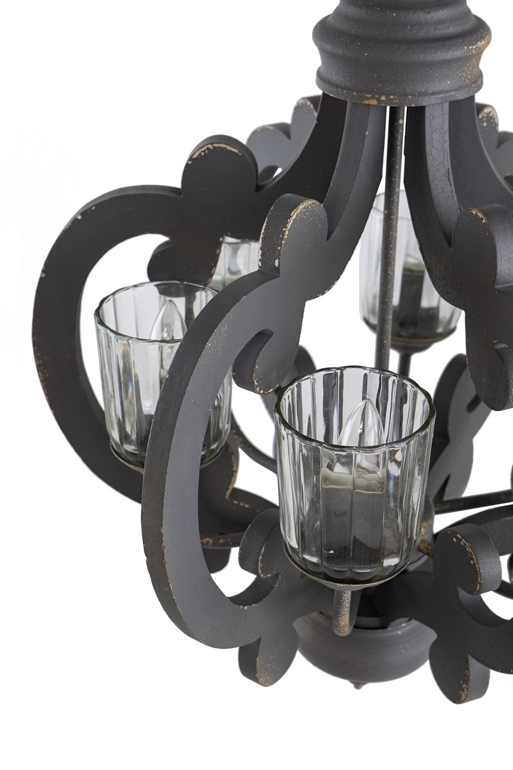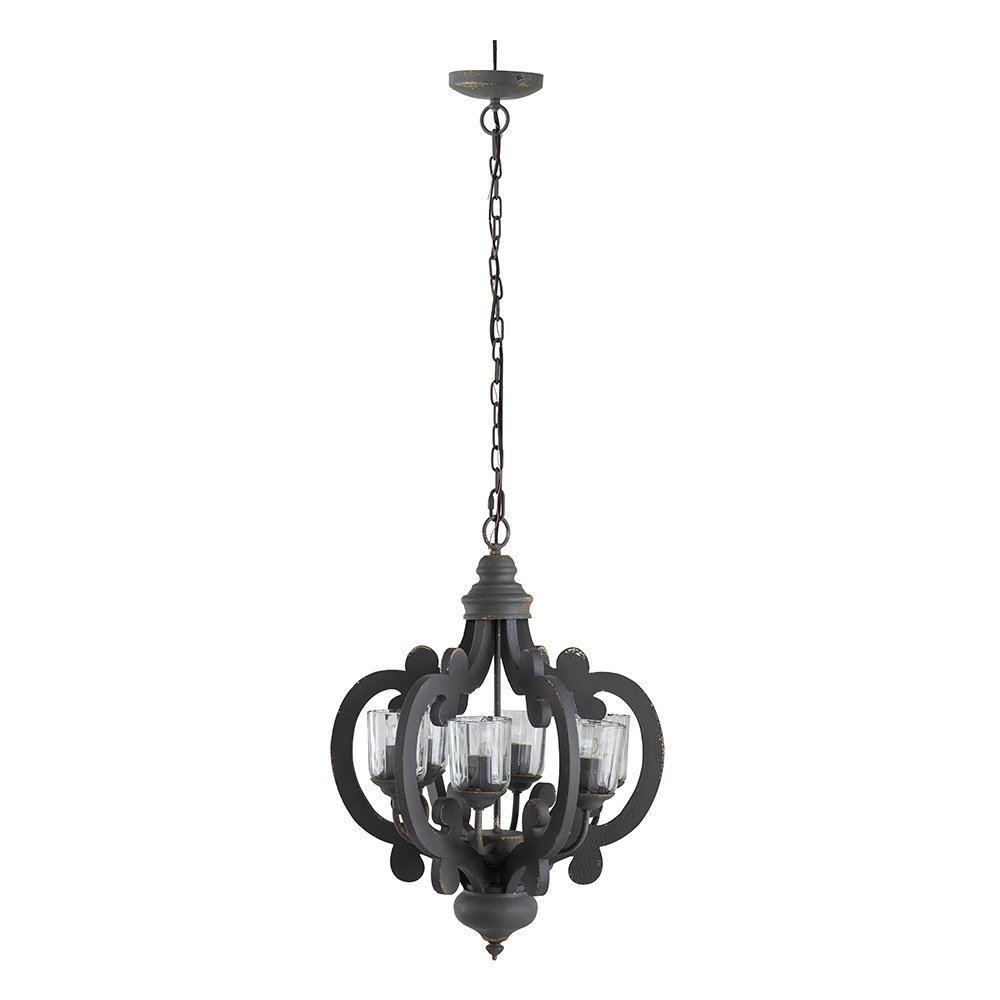 With an intricate design, charcoal gray finish, and glass bulb covers, the 6-Light Chandelier radiates warm light in timeless, sophisticated style. Classic curves and neutral color combine to make this piece a versatile, eye-catching light fixture. Let this piece bring a vintage appeal to an entryway, master bathroom or dining room.
